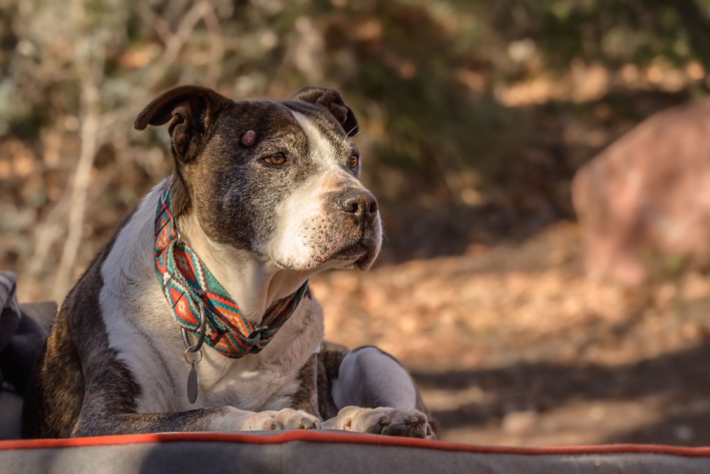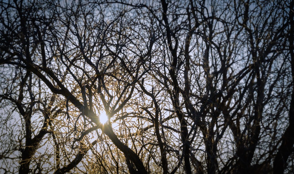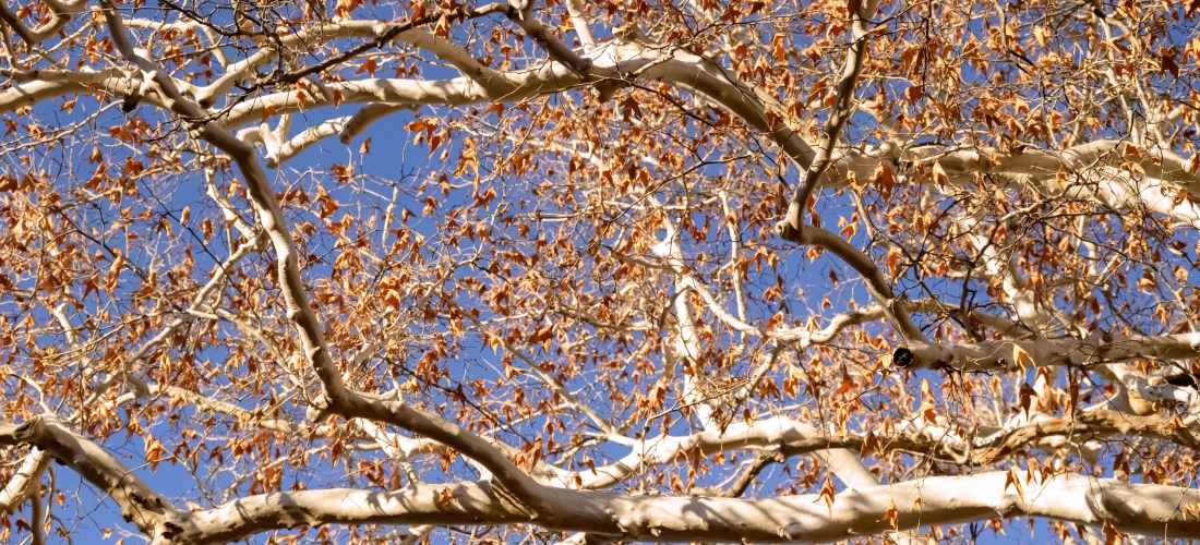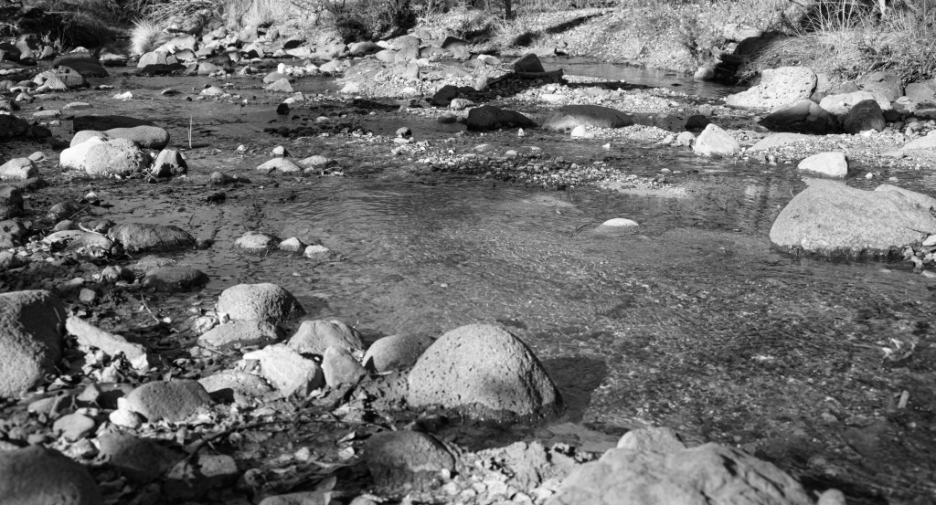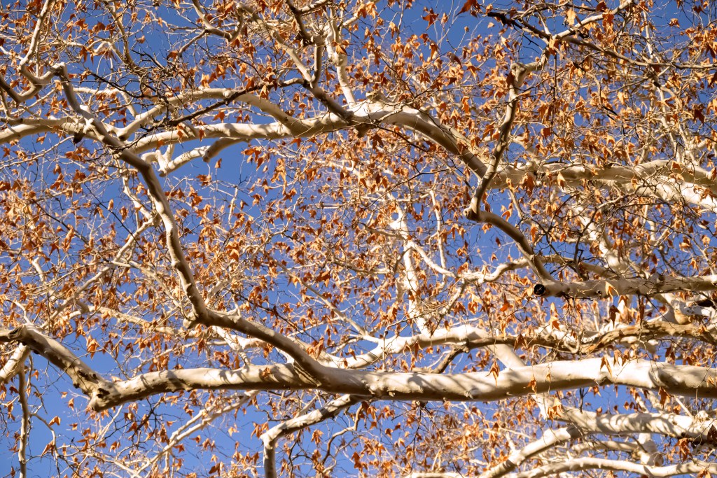 We headed down towards Sedona, AZ, with goals of 1/3 to give Althea a last good hike before 2 months of bedrest during heartworm treatment, 1/3 to give Perry some good sniffs in warm weather at lower elevation, and 1/3 for our 15 year wedding anniversary. After looking at dispersed camping in the area, I chose an area around FR 618 south of Sedona as the lowest elevation / warmest area. We found a fantastic spot to park our van down by the river (ok, it was a small creek, but I’m not arguing with running water!) and under some beautiful white-bark trees which I think are American Sycamore.